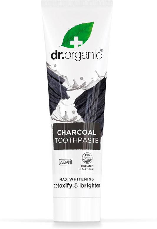 Dr Organic Activated Charcoal Toothpaste, Extra Whitening, Natural, Vegan, Cruelty-Free, Paraben & SLS-Free, Recycled & Recyclable, Organic, 100ml, Packaging may vary