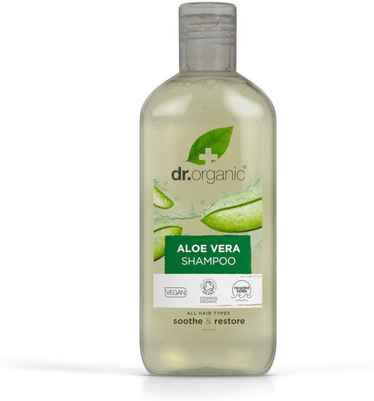 Dr Organic Aloe Vera Shampoo, Soothing, All Hair Types, Natural, Vegan, Cruelty-Free, Paraben & SLS-Free, Recyclable & Recycled Ocean Bound Plastic, Certified Organic, 265ml, Packaging may vary