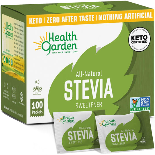 Health Garden Stevia Sweetener Powder - All Natural - Kosher - Gluten and Sugar Free - Keto Friendly (100 Packets)