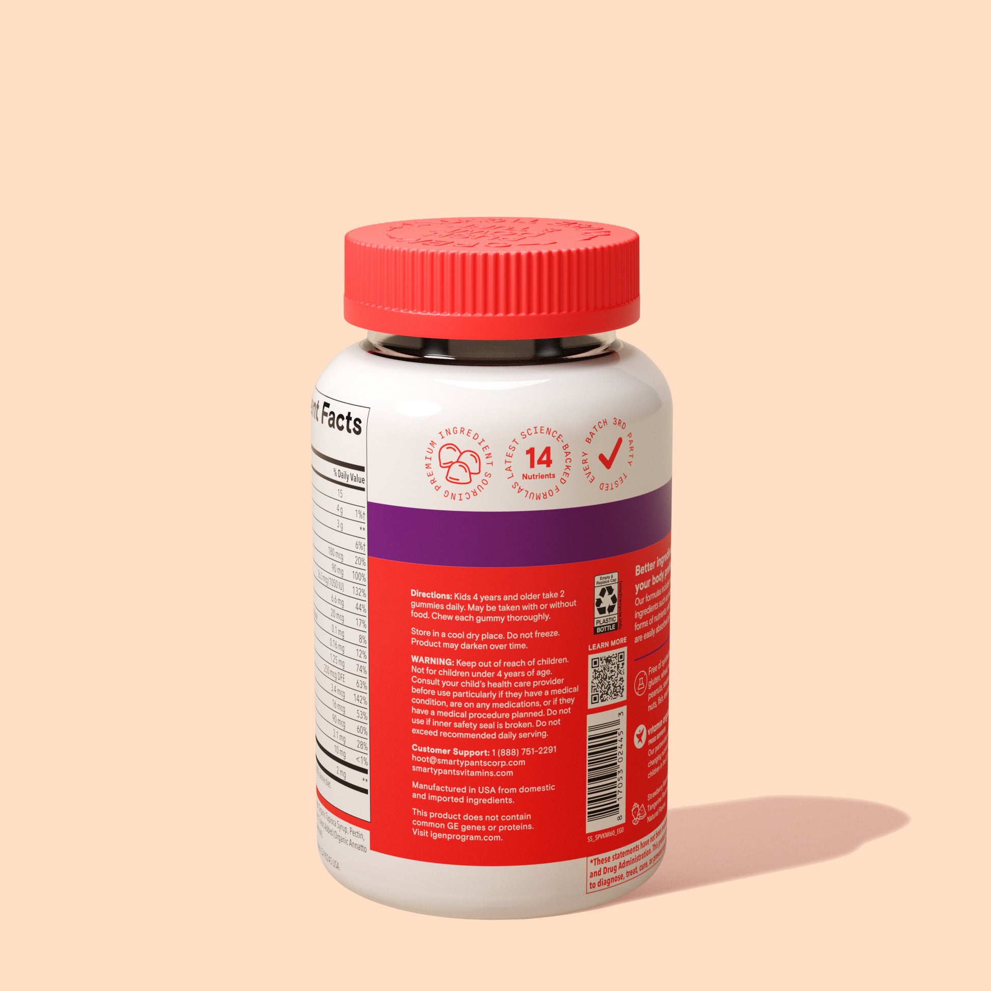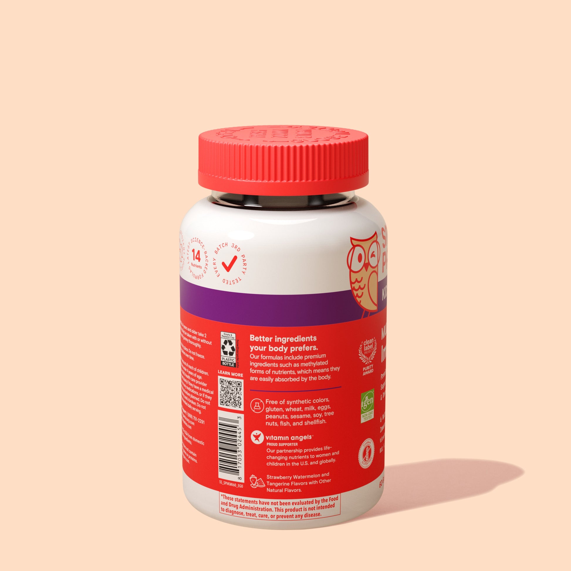 14 nutrients to support kids’ overall growth and development including six nutrients for immune support – Vitamins C, D3, B6, B12, A and Zinc