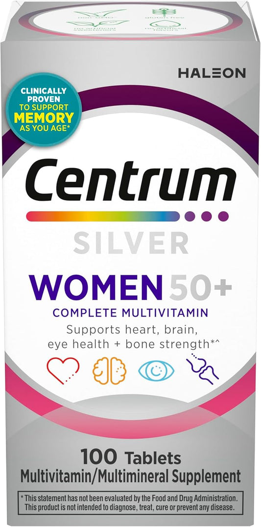 Centrum Silver Women's Multivitamin for Women 50 Plus, Multivitamin/Multimineral Supplement with Vitamin D3, B Vitamins, Non-GMO Ingredients, Supports Memory and Cognition in Older Adults - 100 Ct