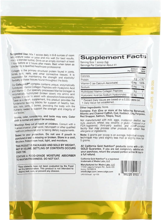 California Gold Nutrition CollagenUP Marine Collagen Hyaluronic Acid Vitamin C Unflavored 7 26 oz 206 g