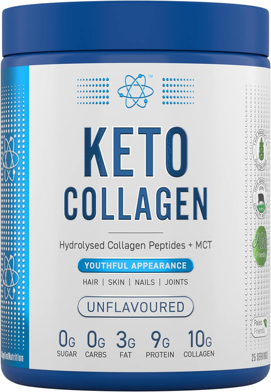 Applied Nutrition Keto Protein Powder, Hydrolysed Collagen Peptides + MCT Healthy Fats & Skin, Ketogenic & Paleo Diet, Zero Sugar & Carbs, Nails, Hair, Bones, Unflavoured, White, 325 g
