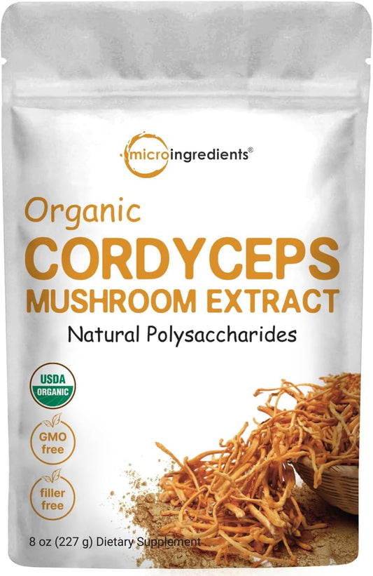 Micro Ingredients Organic Cordyceps Mushroom Extract, 8 oz | 100:1 Extract | Supports Energy & Immune Function | Great for Pre-Workout & Drinks | Non-GMO, Vegan Friendly