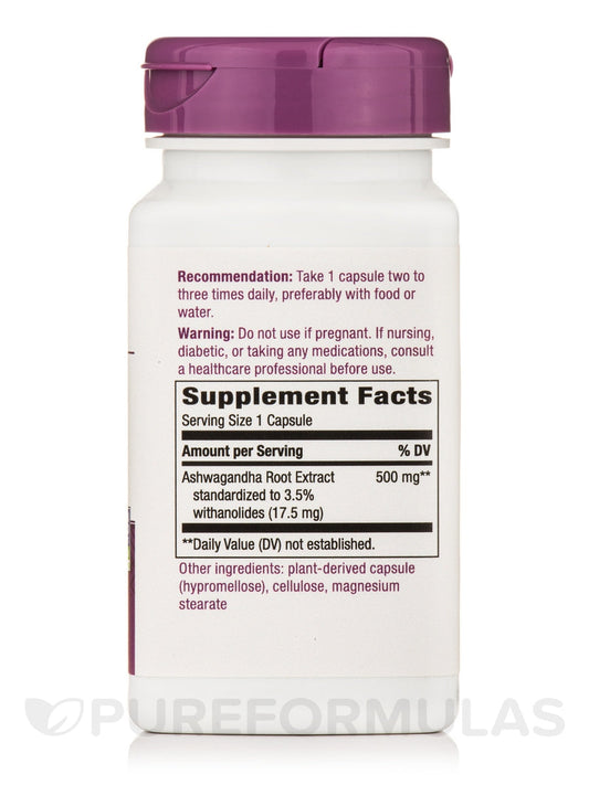 Nature's Way Ashwagandha Root Extract 500mg, Indian Ginseng, Ayurvedic Premium Extract, Standardised to 3.5% Withanolides, Suitable for Vegans and Vegetarians - 60 Capsules