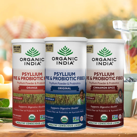 ORGANIC INDIA Psyllium Husk Pre & Probiotic Fiber - Psyllium Husk Powder, Keto, Paleo, Vegan, Gluten Free, Dietary Fiber Power, Psyllium Husk Whole - Cinnamon Spice Flavor, 10 Oz
