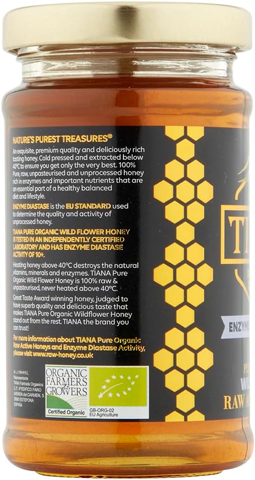 TIANA Pure Organic Raw Unpasteurised Wildflower Honey, Enzyme Diastase Activity 10+, 250g
