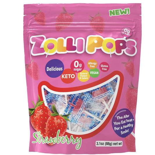 Zollipops Clean Teeth Lollipops AntiCavity Sugar Free Candy with Xylitol for a Healthy Smile Great for Kids Diabetics and Keto DietStrawberry 3.1oz, Strawberry, 15 Count