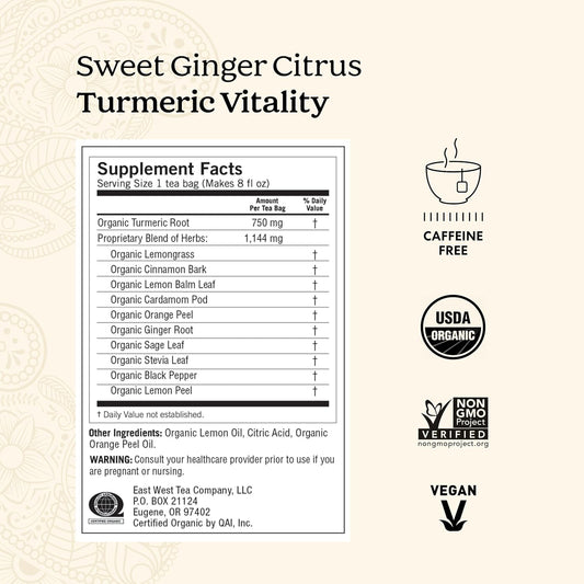 Yogi Tea Sweet Ginger Citrus Turmeric Vitality - 16 Bags per Pack (6 Packs) - Organic Ginger & Turmeric Root Tea - Supports Well-being - Includes Cinnamon Bark & More