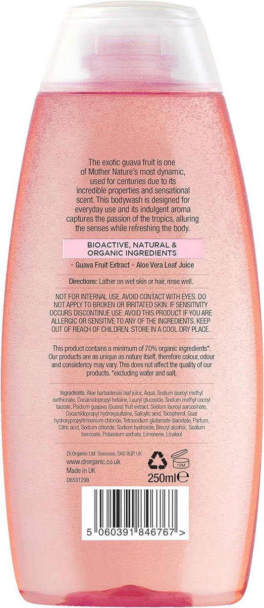 Dr Organic Guava Body Wash, Shower Gel, Mens, Womens, Natural, Vegan, Cruelty-Free, Paraben & SLS-Free, Organic, 250ml, Packaging may vary