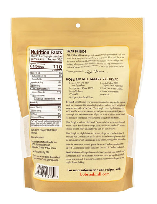 Bob's Red Mill Organic Dark Rye Flour, 20oz (Pack of 4) - Non GMO, Whole Grain, Vegan, Kosher