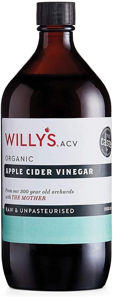 WILLY'S Apple Cider Vinegar with Live Mother - Probiotics For Detox & Gut Health - 1L Glass Bottle - Sustainable ACV (Packaging may vary)