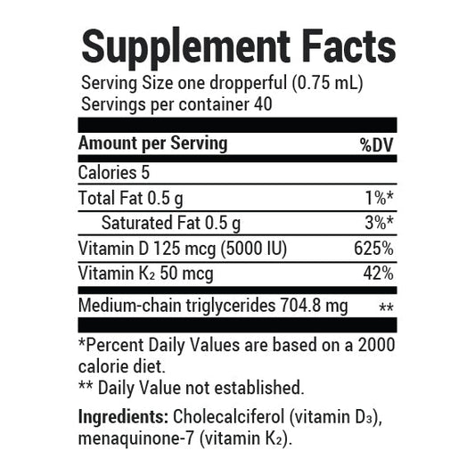 Vitamin D3 and K2 Liquid with MCT Oil – Unflavored – 1 fl oz