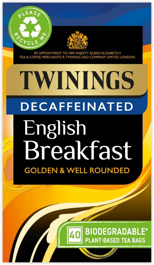 Twinings English Breakfast Decaf Tea | Golden, Well Rounded & Full Bodied Decaffeinated Black Tea | 40 Biodegradable Tea Bags
