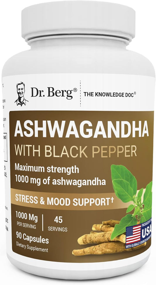 DR. BERG NUTRITIONALS Dr. Berg's Ashwagandha with Black Pepper Supplement - Capsules for Mood & Stress Support, Energy, Joint, Thyroid Immune System 1500mg Organic Supplements 90