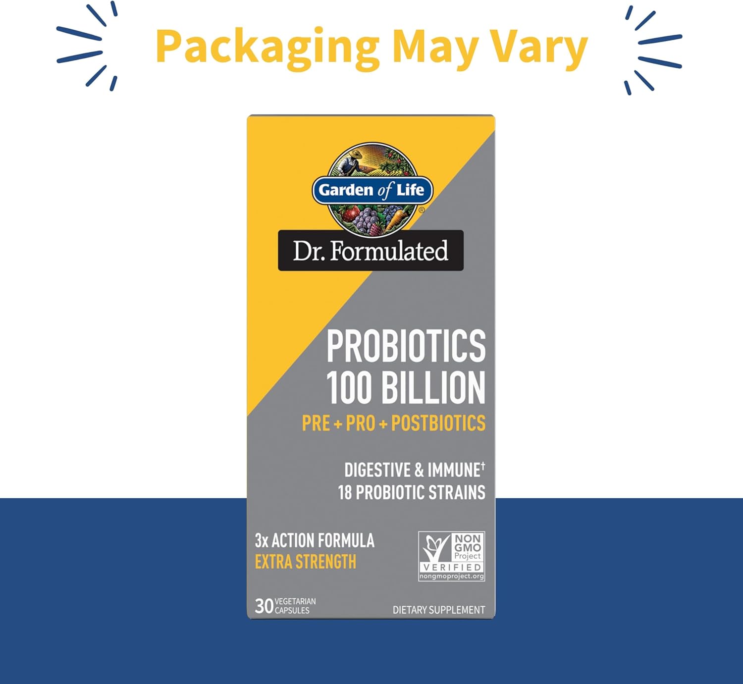 Garden of Life Dr Formulated Once Daily 3-in-1 Complete Probiotics, Prebiotics & Postbiotics Supplement for Women and Men’s Digestive & Immune Health – Extra Strength, 100 Billion CFU, 30 Day Supply