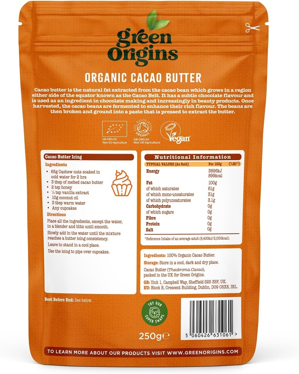 Green Origins Organic Cacao Butter 250g