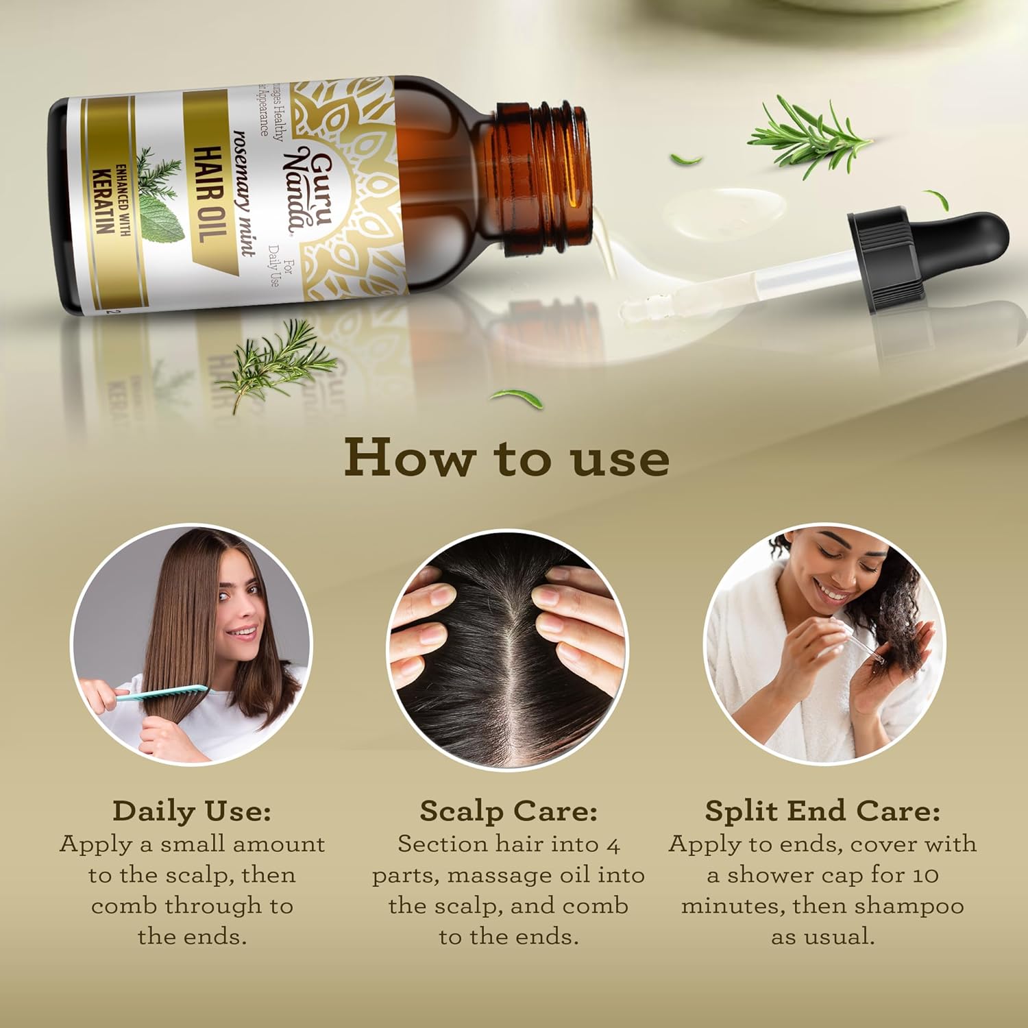 - ETHICALLY SOURCED & CRUELTY-FREE: GuruNanda's rosemary hair oil is made with ethically sourced, cruelty-free ingredients, ensuring you can enjoy a clean, sustainable hair care routine that aligns with your values