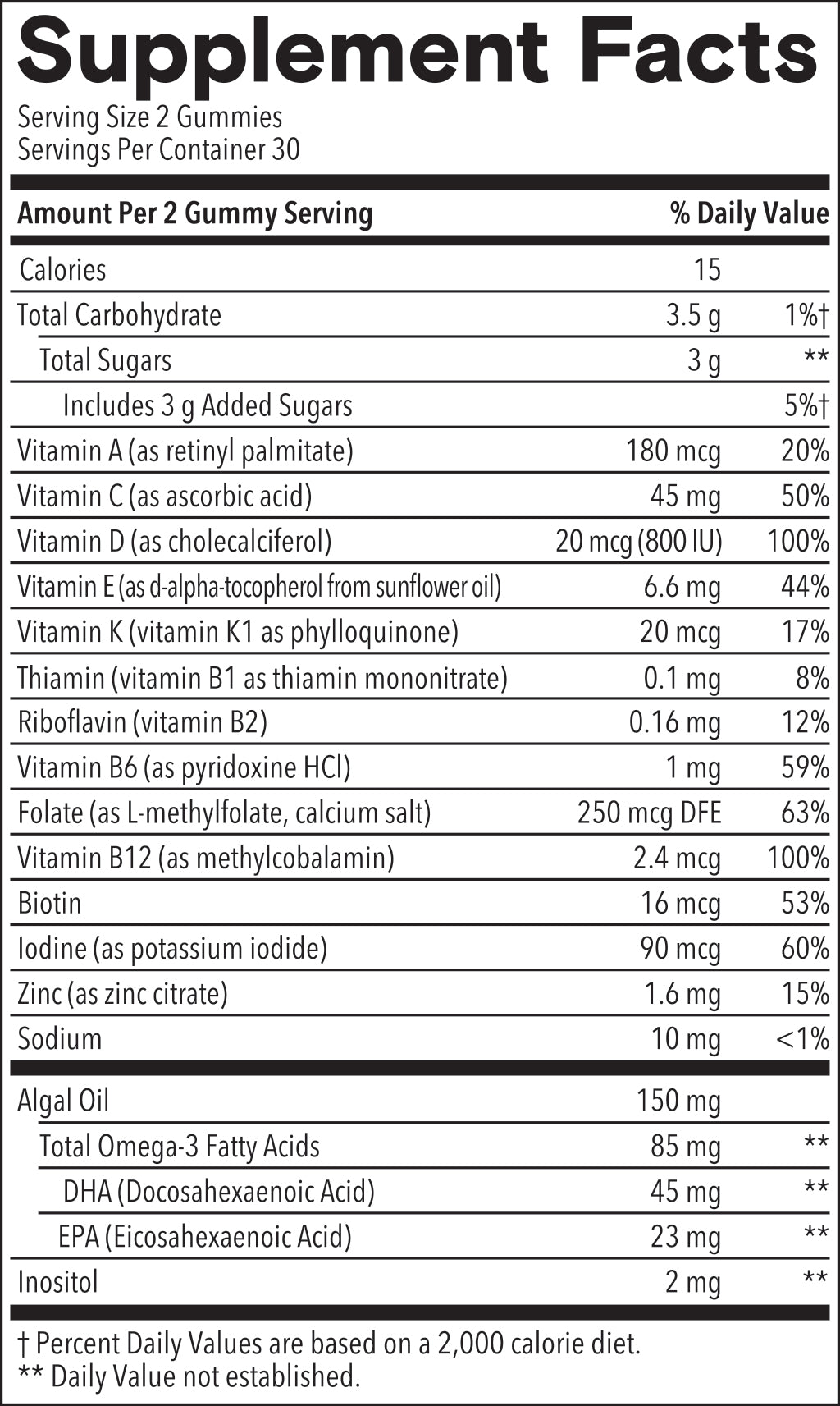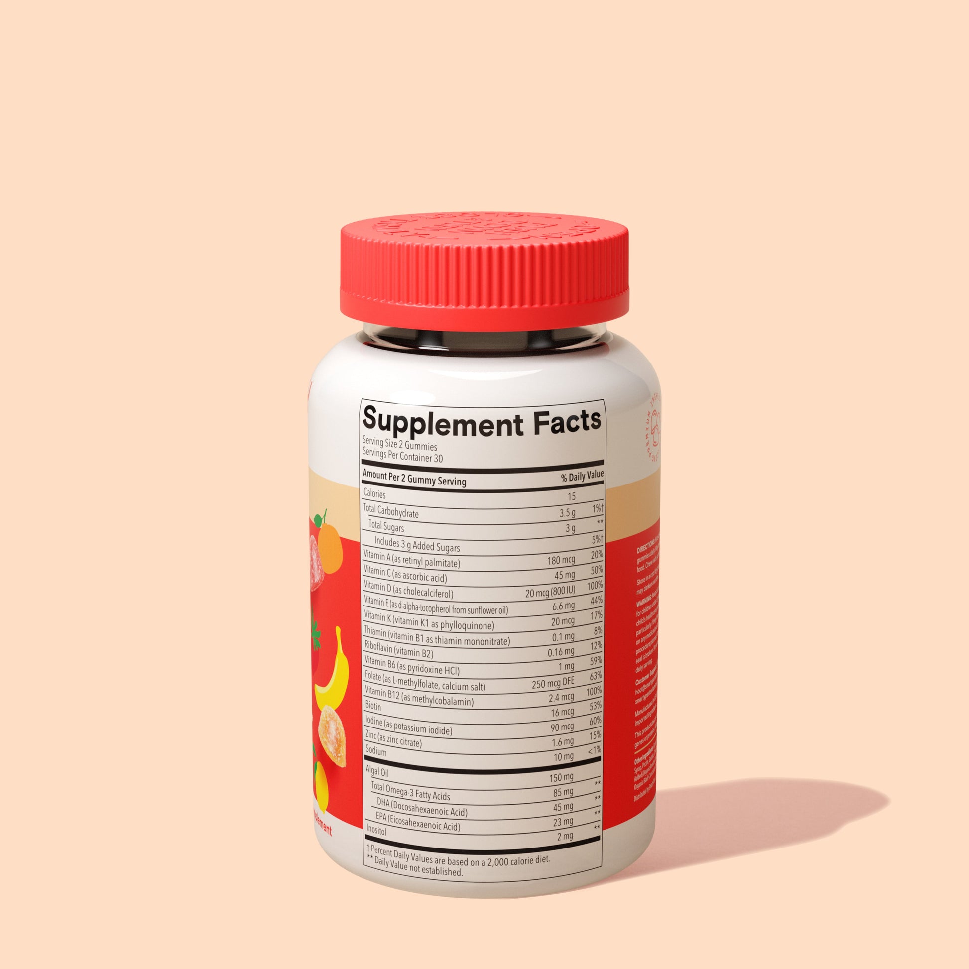Multivitamin specifically-formulated to support kids growth and development with 16 daily nutrients including vitamins C, D3, B12, A, K1, and folate, as well as Omega-3 DHA & EPA.*