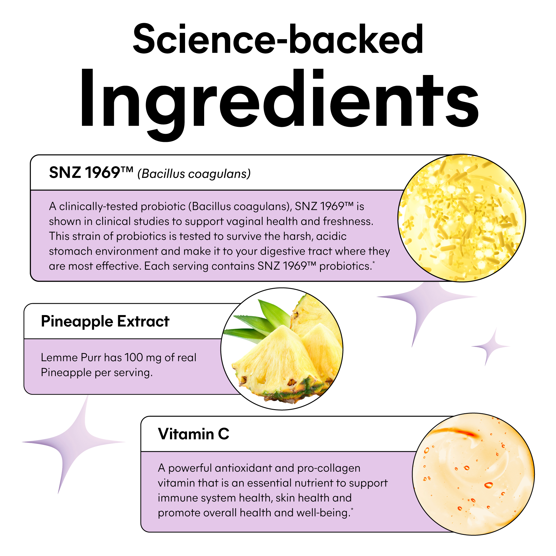 Keep it balanced: enjoy a real pineapple moment while clinically-studied SNZ 1969™ probiotics specifically target vaginal health and pH levels to support freshness and odor. Plus, we added Vitamin C for antioxidant benefits and real Pineapple extract.*