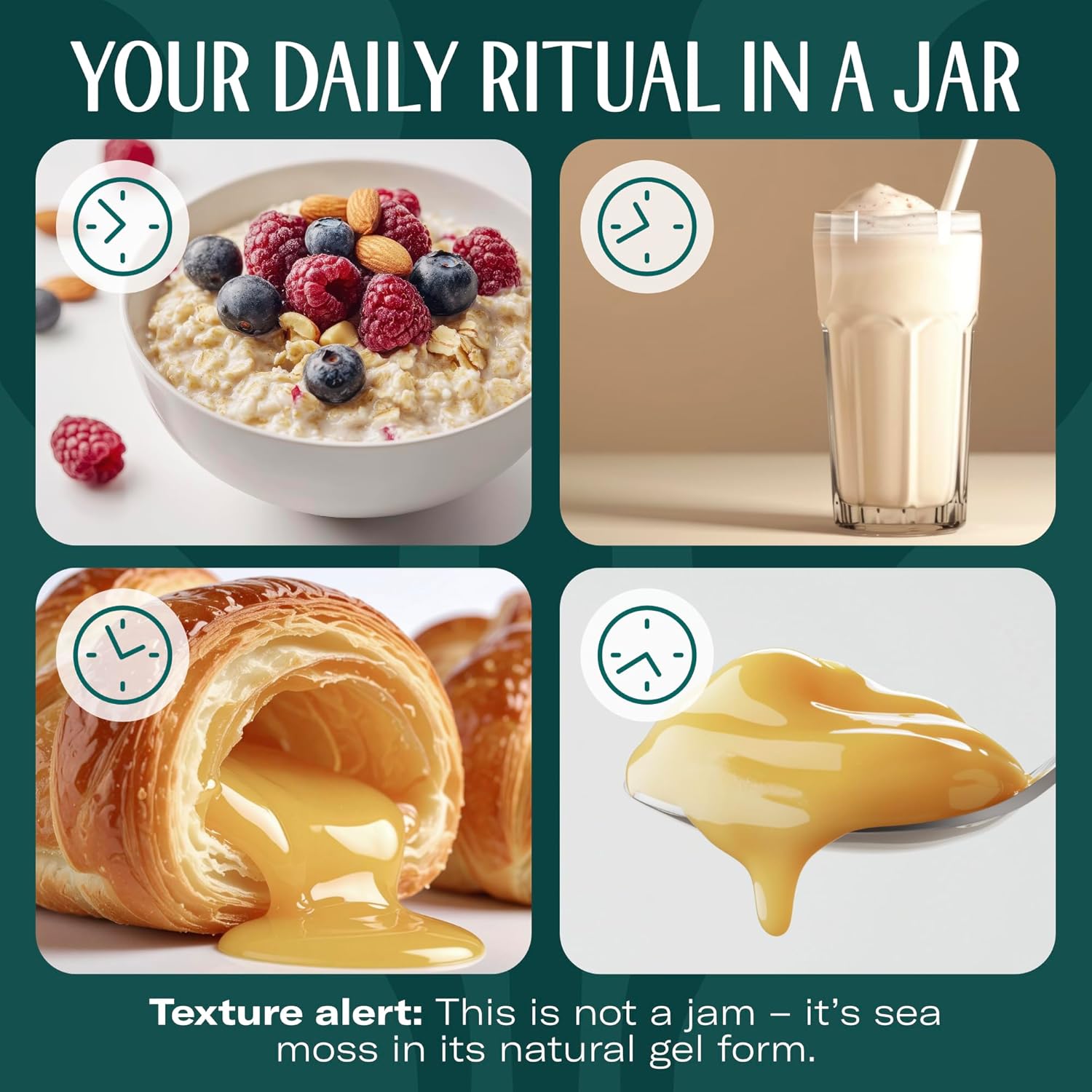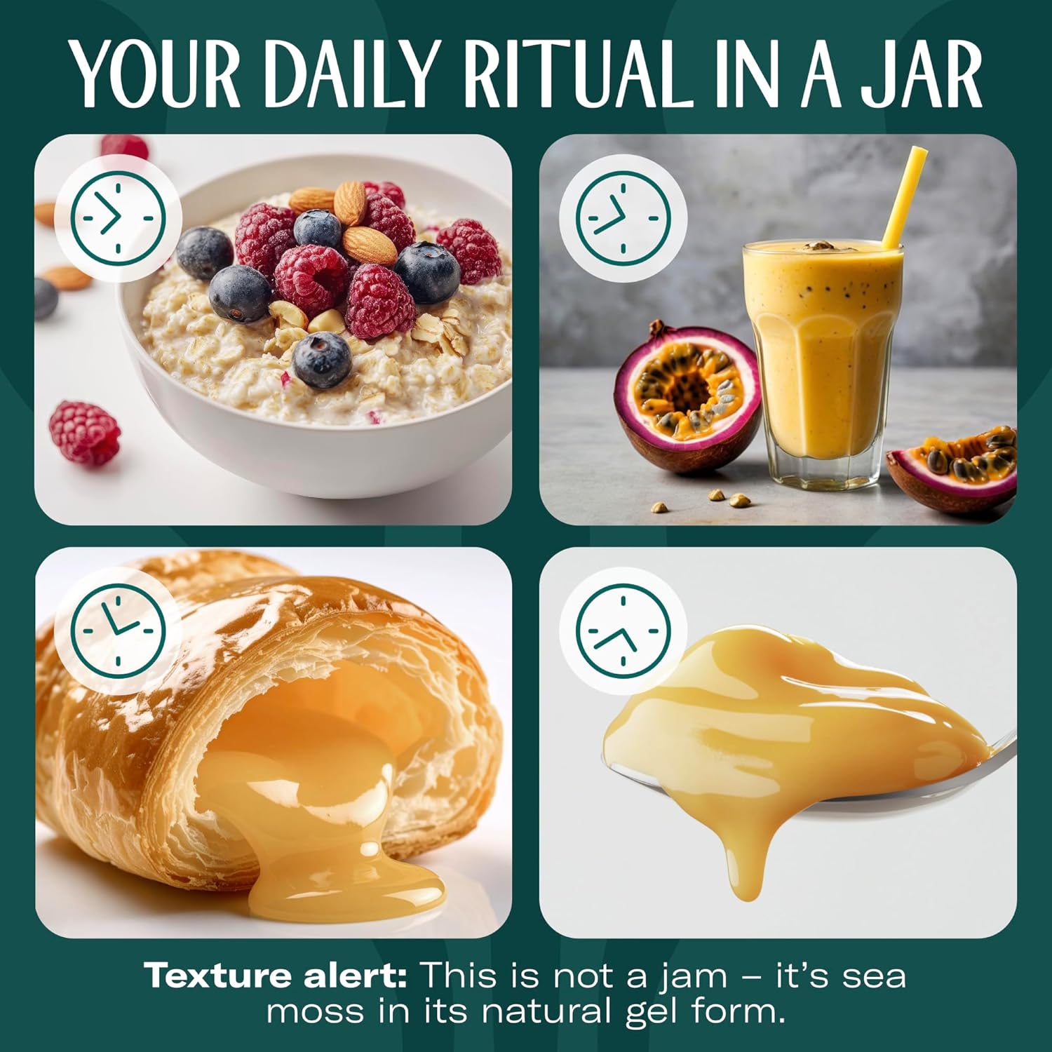 - SMOOTH, SIMPLE, VERSATILE: Our Sea Moss comes in a smooth, gel-like consistency – not a jam or jelly. Add to drinks, smoothies, teas, juices, oatmeal, or yogurts, or take it pure by the spoon. Looking for something different? Also great as a natural face or hand mask thanks to its skin-loving minerals. One gel – many ways to benefit.