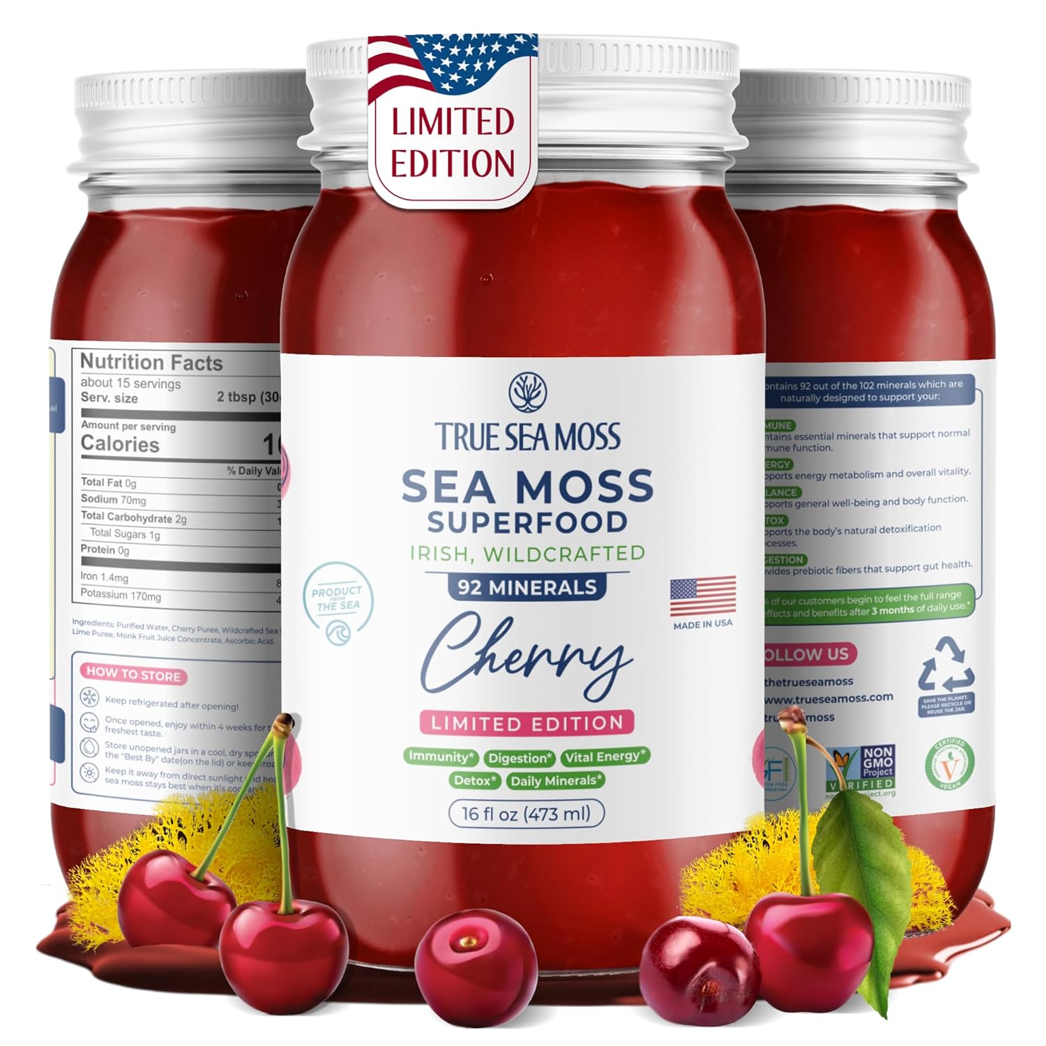 TrueSeaMoss Sea Moss Gel – Limited Edition – Made in USA – Wildcrafted Seamoss, Fresh Fruits & Sea Vegetables – Cherry, Pack of 1 (Labels May Vary)