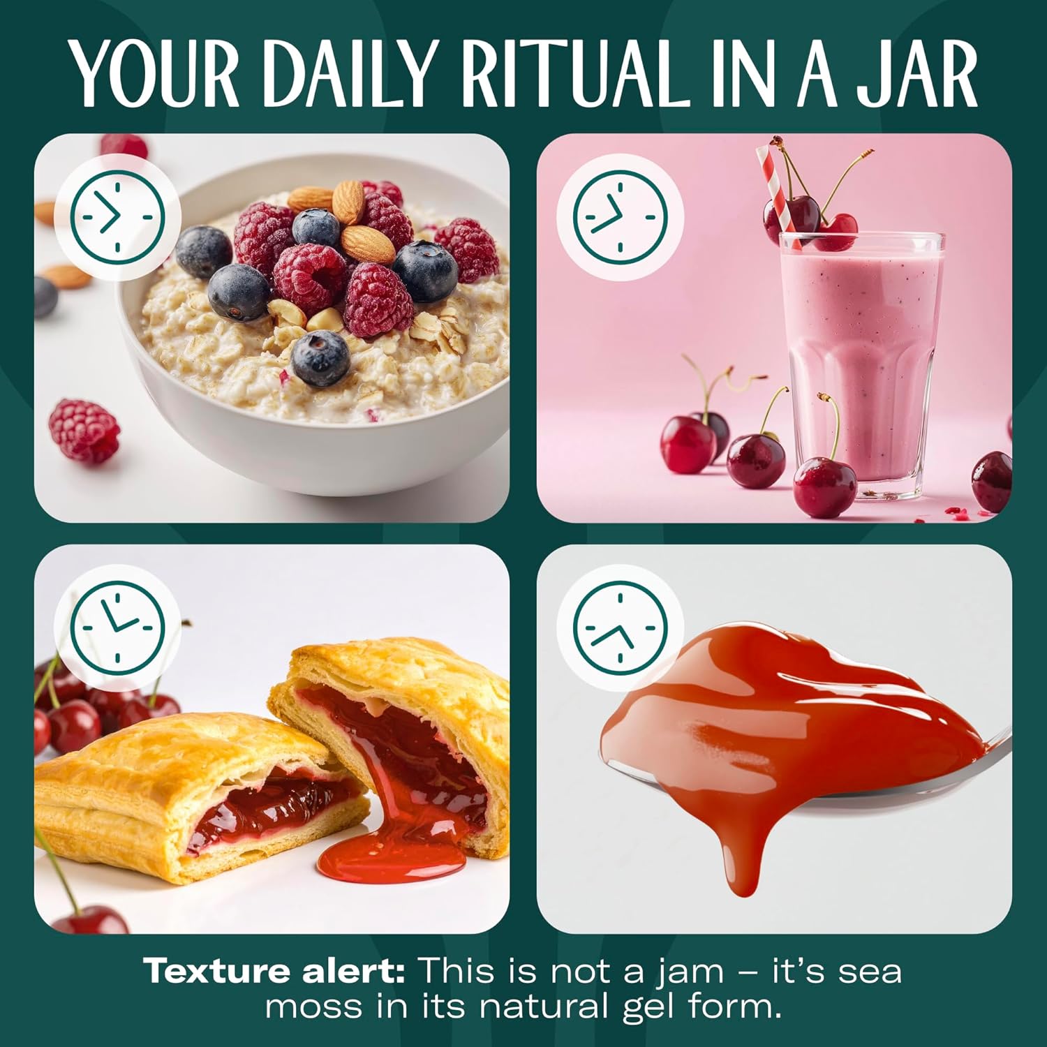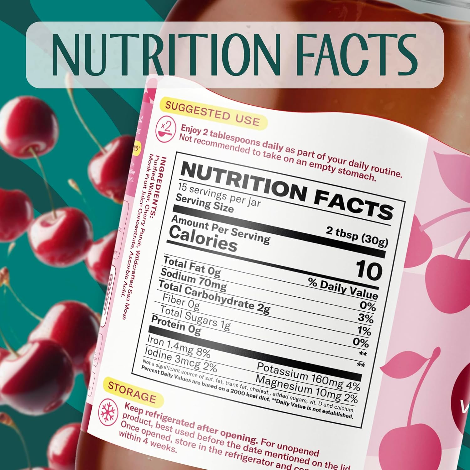 - CHERRY & SEA MOSS: Naturally sweet and smooth, with no artificial flavoring. You may notice a light ocean-like aftertaste – a sign of real, natural Sea Moss. Packed with vitamins and minerals. Made in the USA. Notice, Color may vary by batch, images are for illustration only.