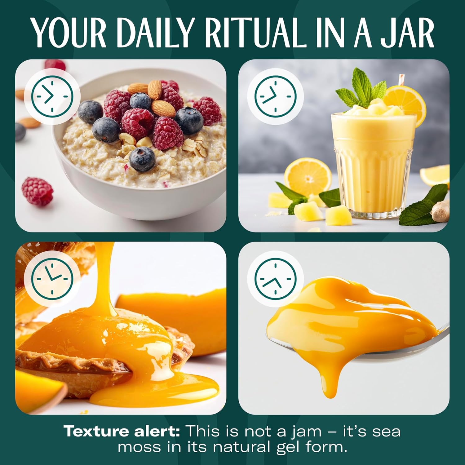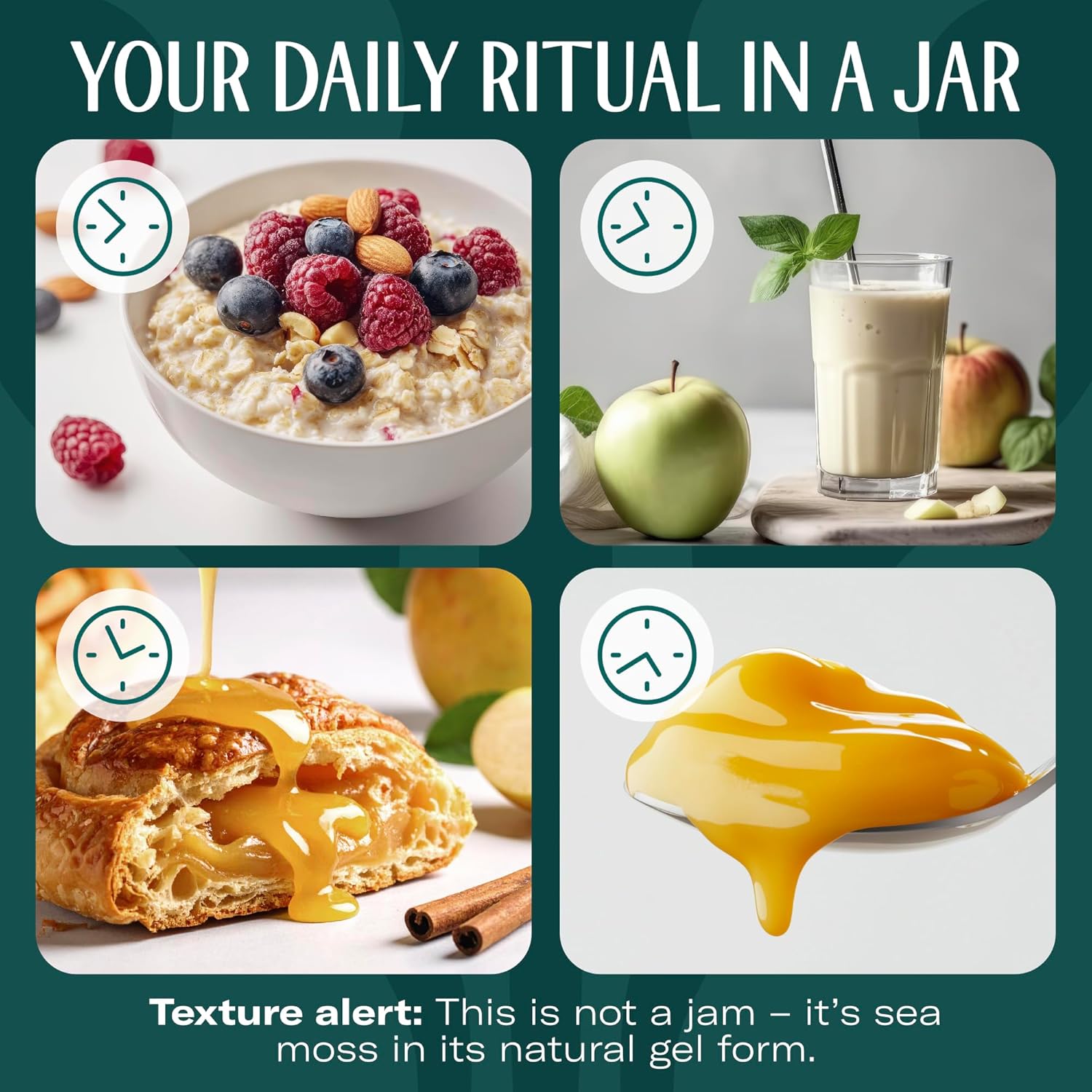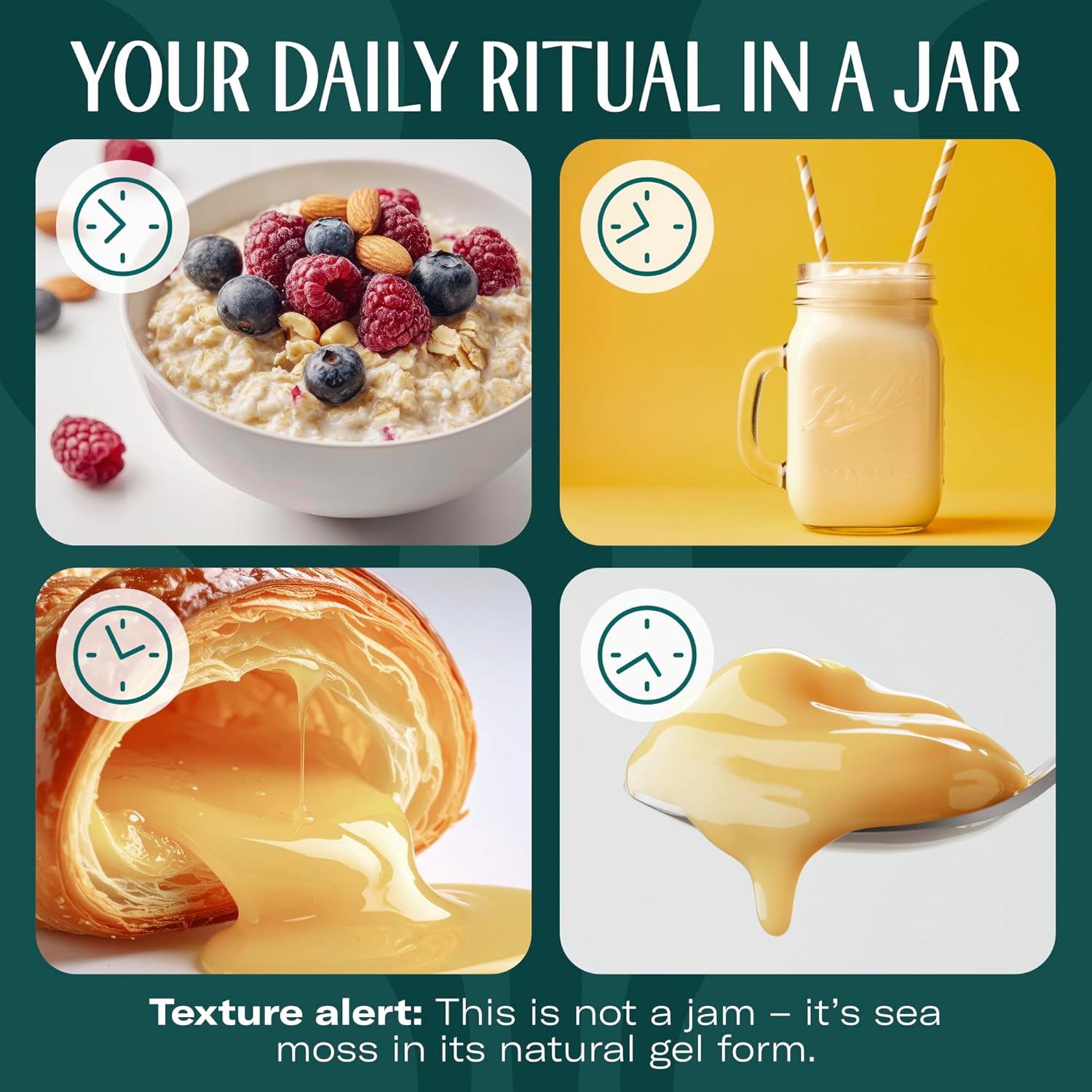 - Smooth, Simple, Versatile: our sea moss comes in a smooth gel-like consistency, not a jam or jelly; add it to drinks, smoothies, teas, juices, oatmeal, or yogurts or take by the spoon; also great as a natural face or hand mask thanks to its skin-loving minerals, if you’re looking for something different; one gel with many ways to benefit
