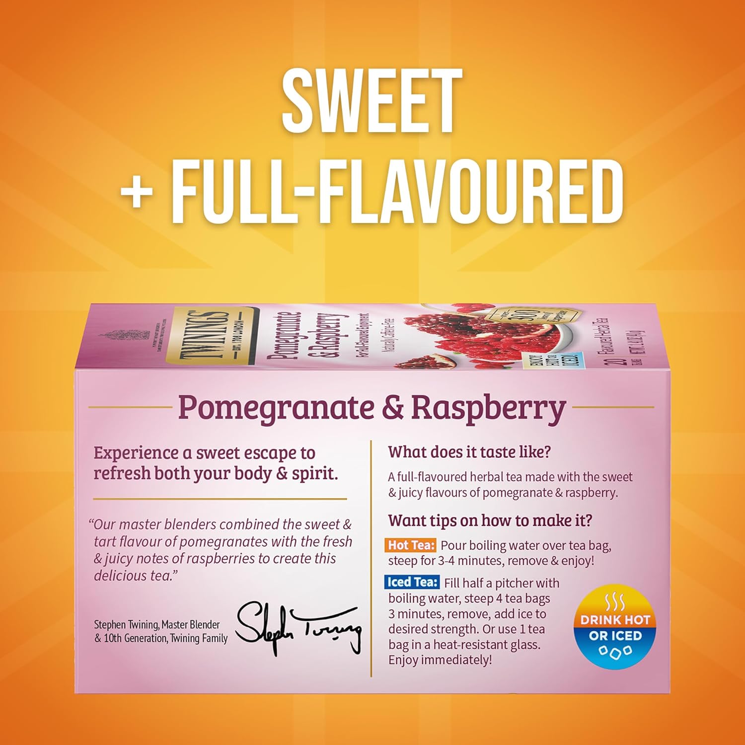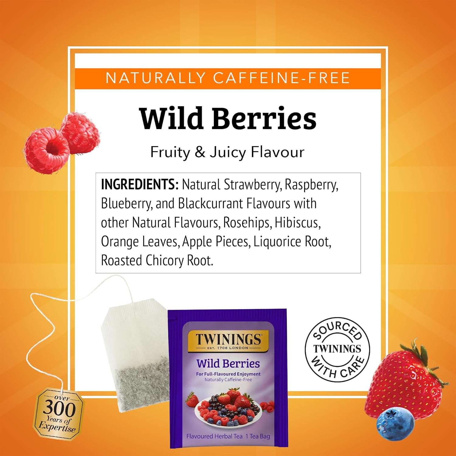 Twinings Wild Berries Herbal Tea Individually Wrapped Bags, 20 Count (Pack of 1), Full-Flavoured, Naturally Caffeine-Free, Enjoy Hot or Iced, 20 Teabags