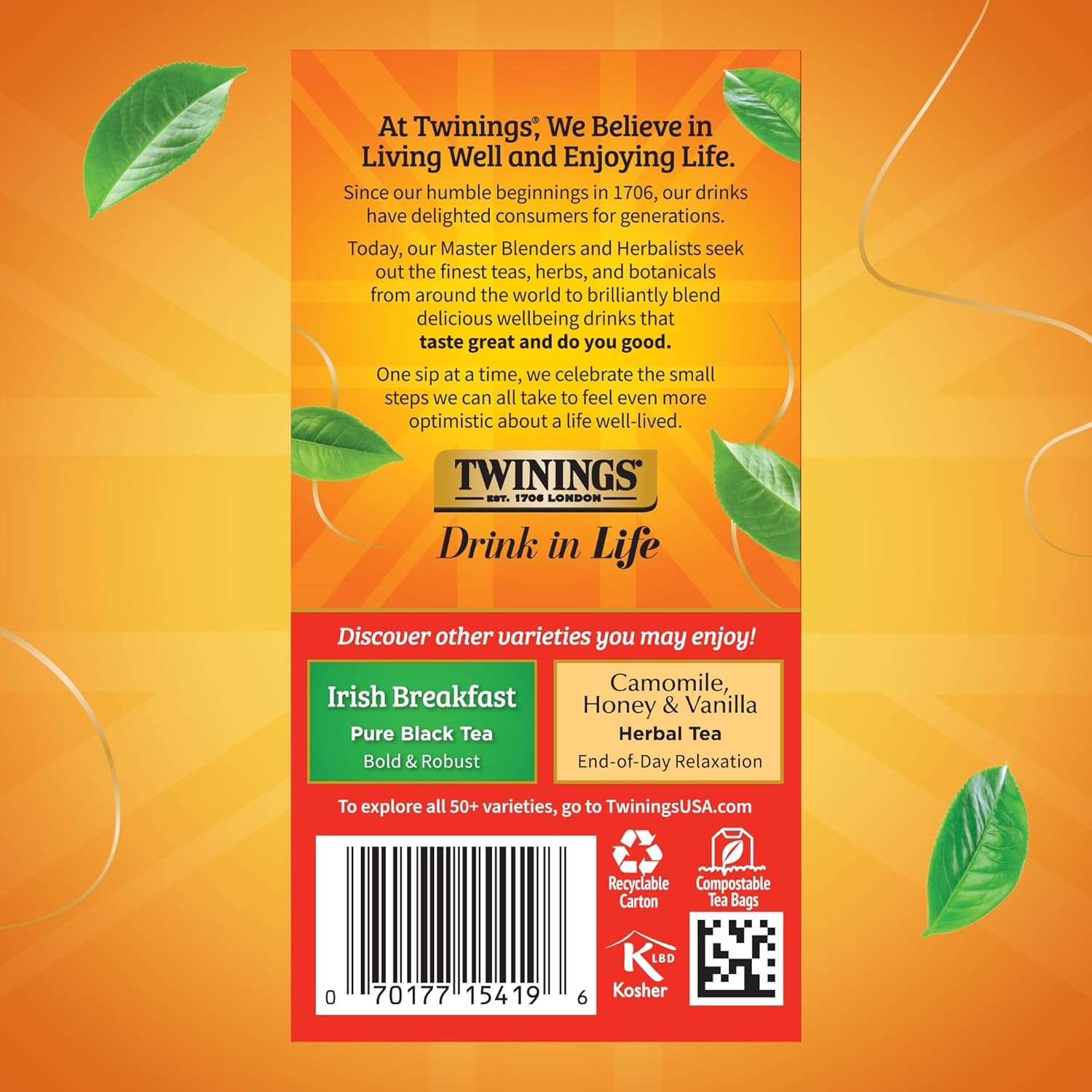 - INDIVIDUALLY SEALED TEA BAGS STAY FRESH: Take your tea on the go in your purse, workout bag, backpack, school or work desk or car; Each tea bag is sealed for freshness so every cup of Twinings is the perfect cup of Twinings
