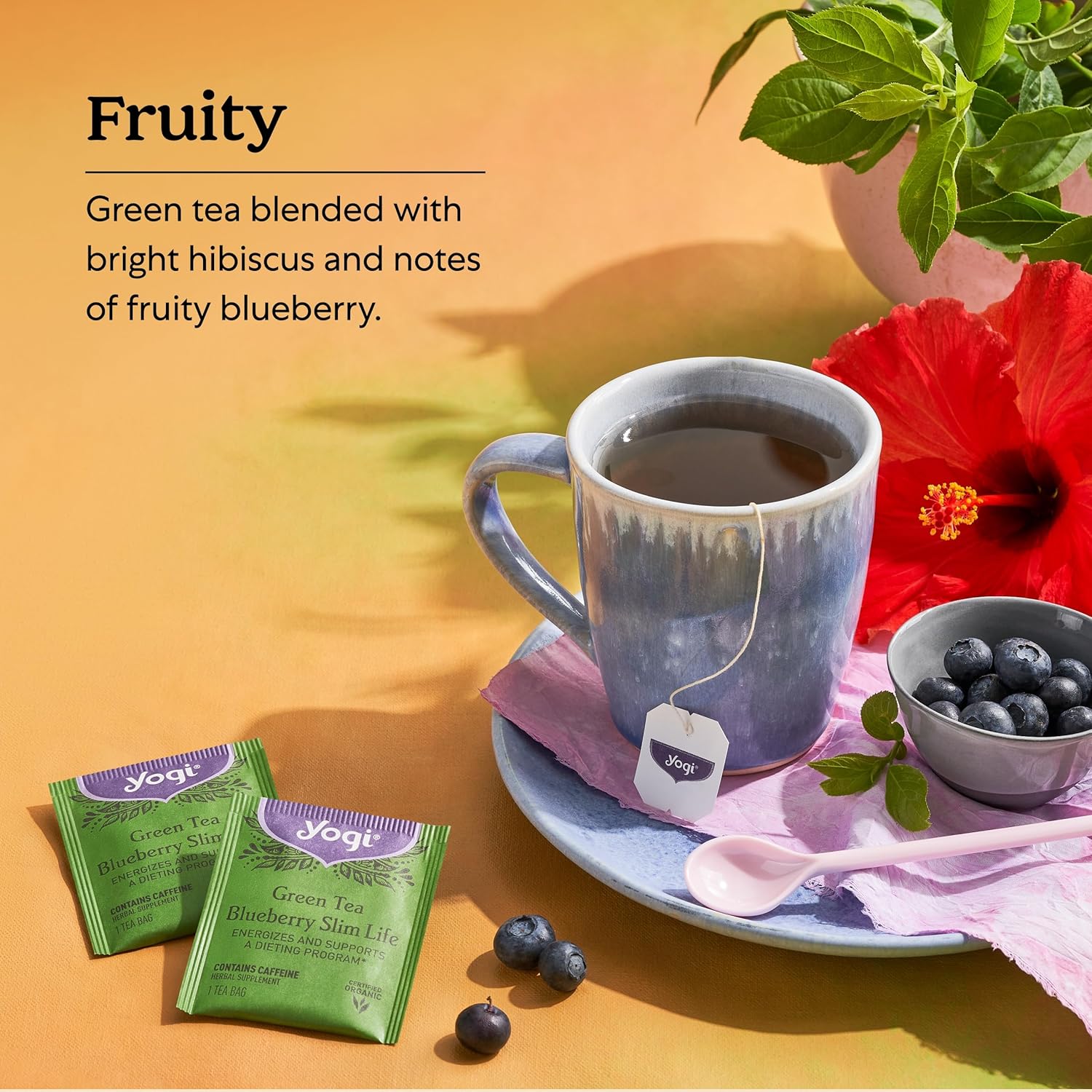 - Flavor: Yogi Green Tea Blueberry Slim Life tea combines bold Green Tea with bright Hibiscus and sweet Blueberry flavor for a refreshing and lightly sweet Green Tea blend